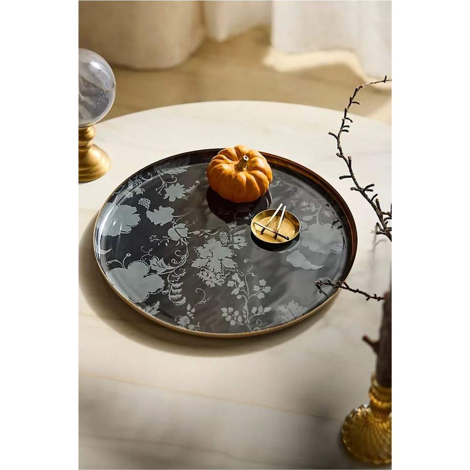ถาดเสิร์ฟสี่เหลี่ยมเคลือบอีนาเมลคุณภาพสูง ผลิตจากสแตนเลสสตีล ลายผีเสื้อและสัญลักษณ์จักรราศี ทนทาน