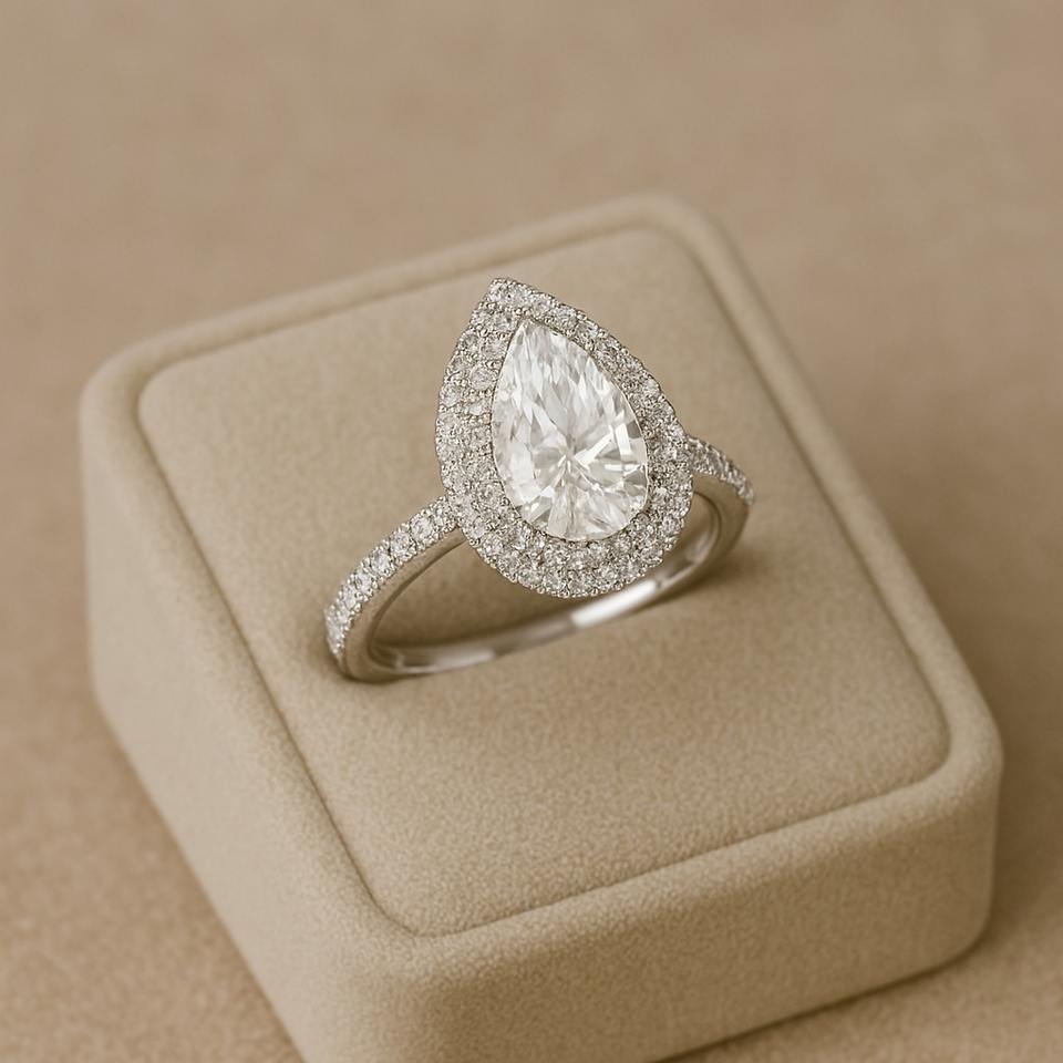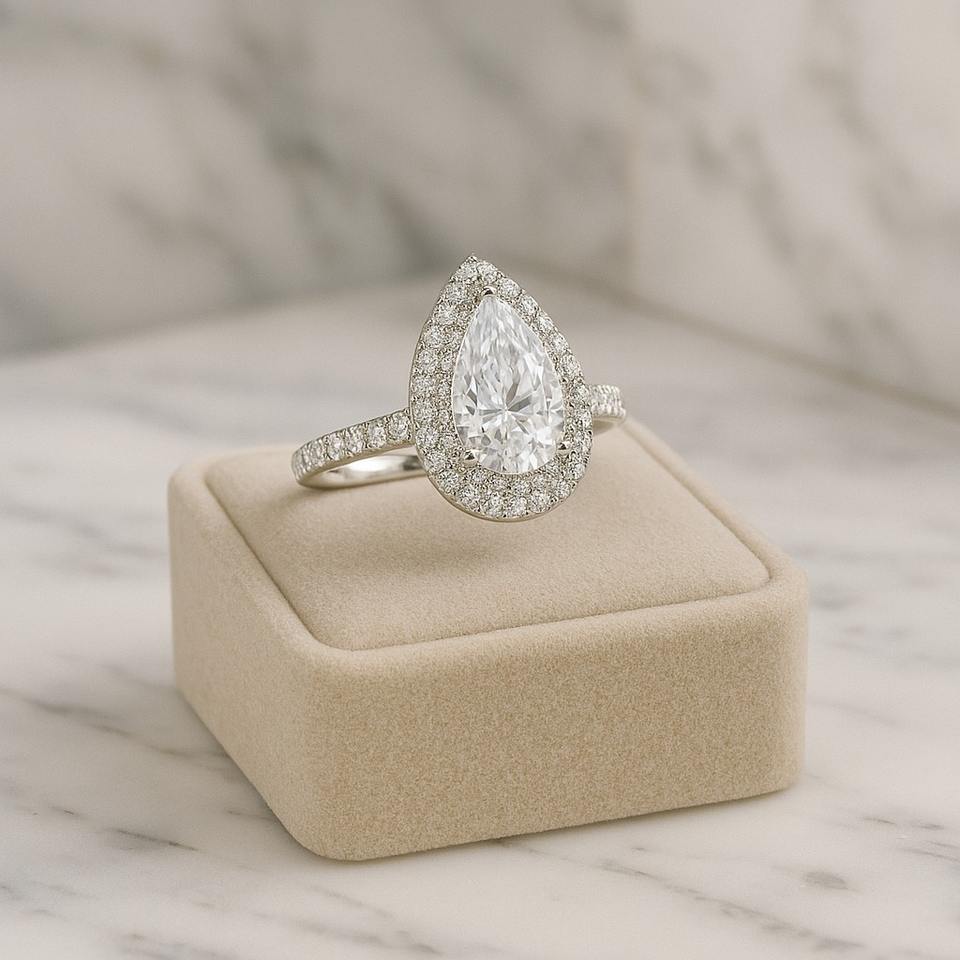 แหวนเพชรสำหรับผู้ใหญ่10K ทำจากเงินทองสำหรับ VVS2ตัดลูกแพร์1กะรัตมีใบรับรองจริยธรรมขายส่ง