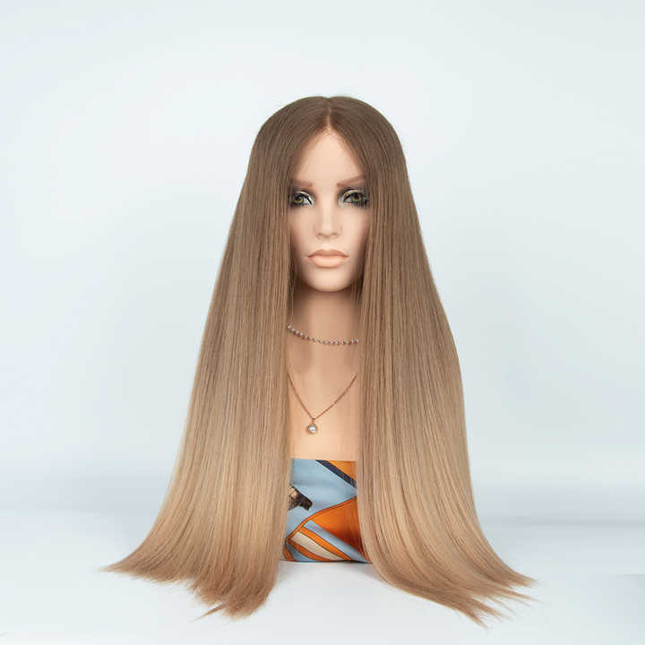 Premium European Hair Lace Top Jewish Wig Brown With Caramel Highlight Color Lace Front Wig With Silk Liner for Women Hair Loss