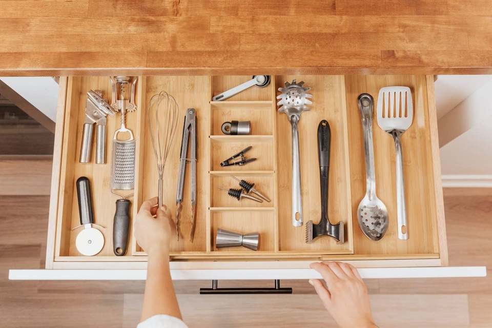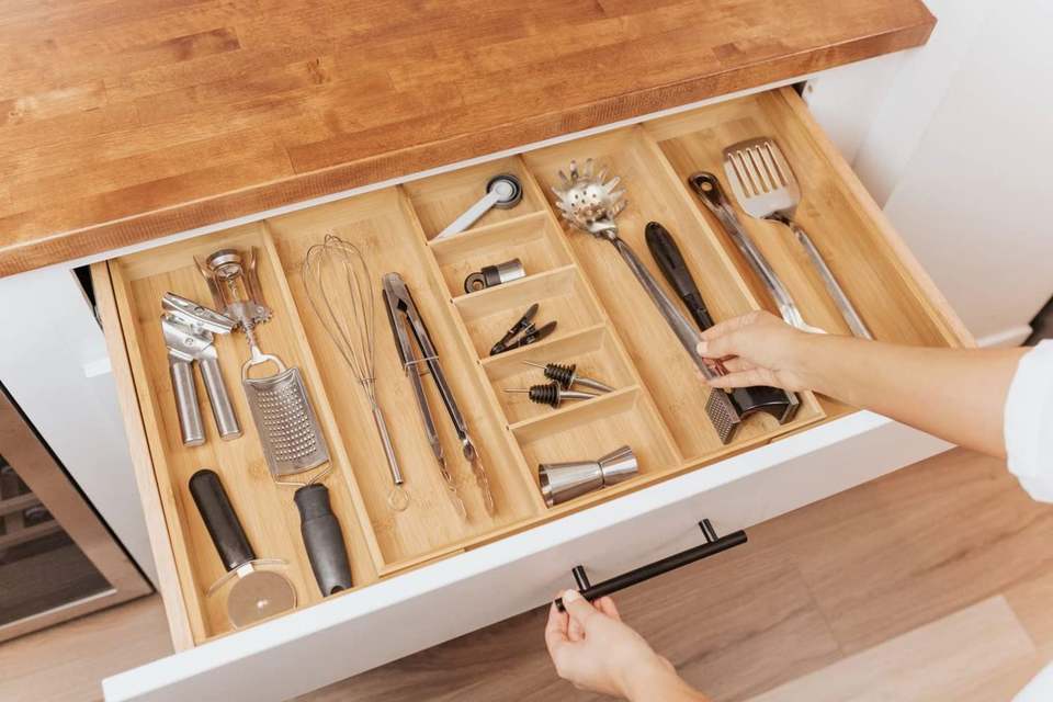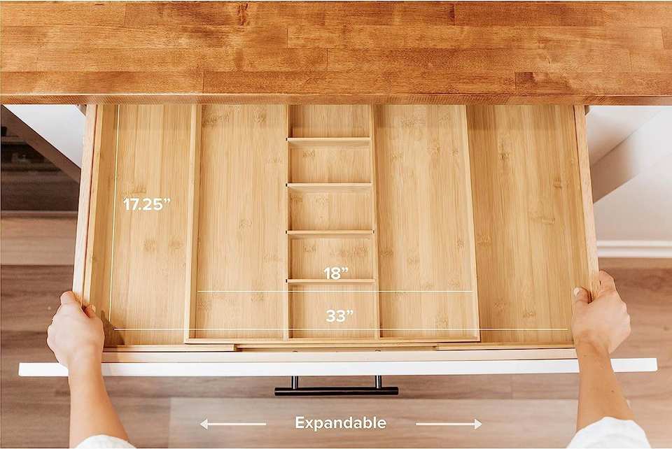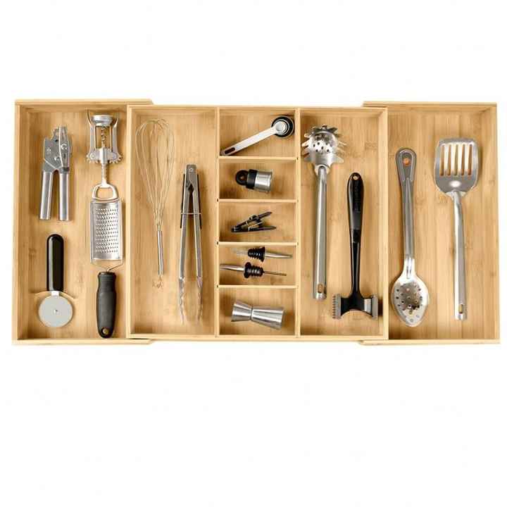 ถาดจัดระเบียบอุปกรณ์ครัวไม้ไผ่สำหรับลิ้นชัก