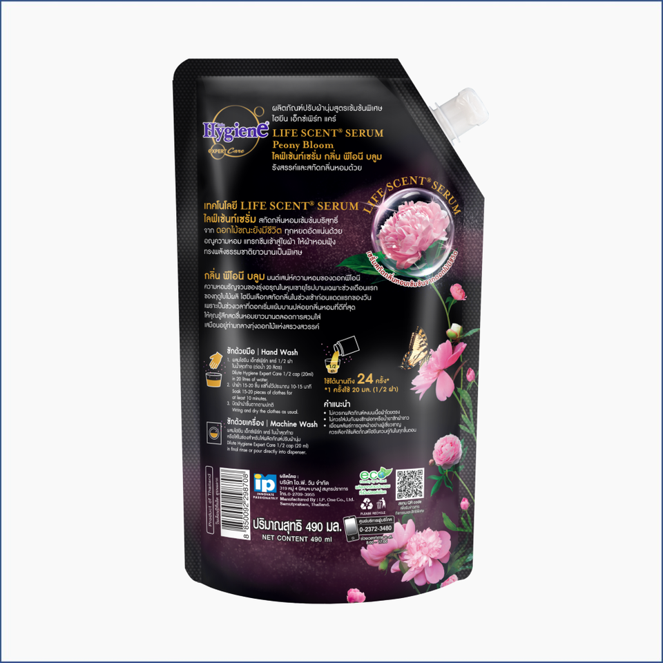 Expert Care 490ml Hygiene Washing Liquid Softener Peony Bloom Life Scent Serum Liquid Fabric Cleaners for Washing Machines