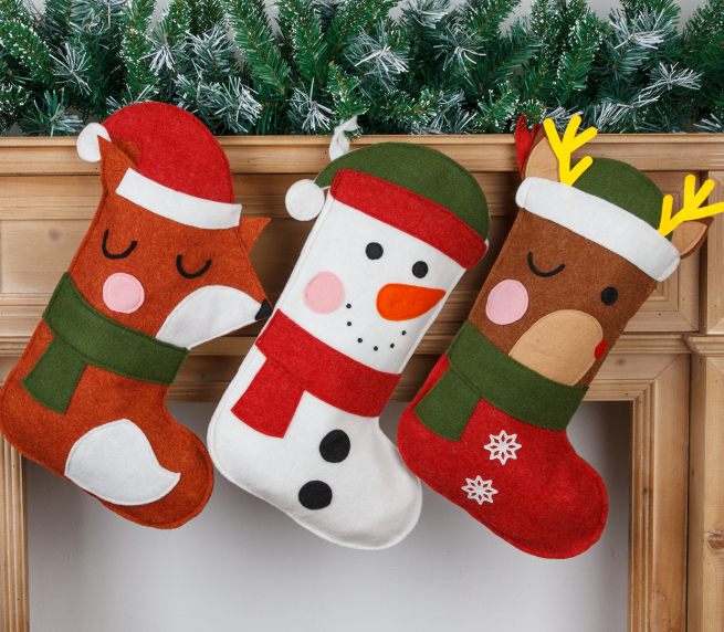 ของตกแต่งถุงเท้าคริสต์มาสที่ทำจากสักหลาดสวยงามสำหรับใช้ในบ้านในวันคริสต์มาส