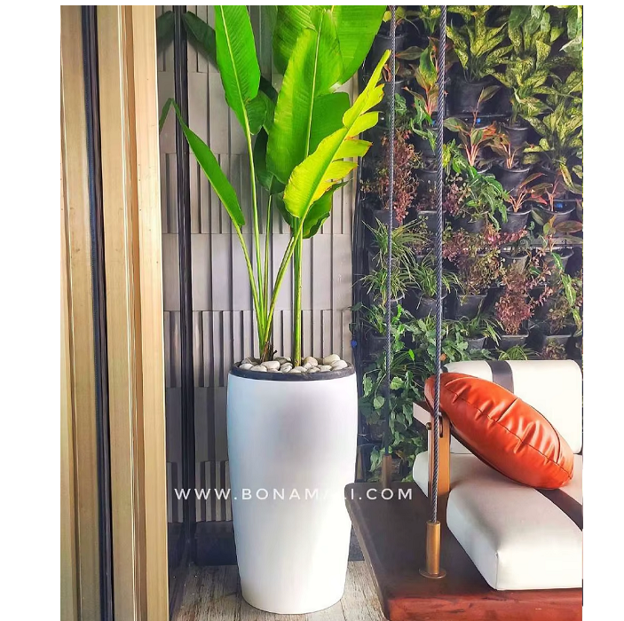 ชุดกระถางต้นไม้ไฟเบอร์กลาสสีขาวผิวด้านสำหรับสวนในบ้านใช้กลางแจ้งทนทาน