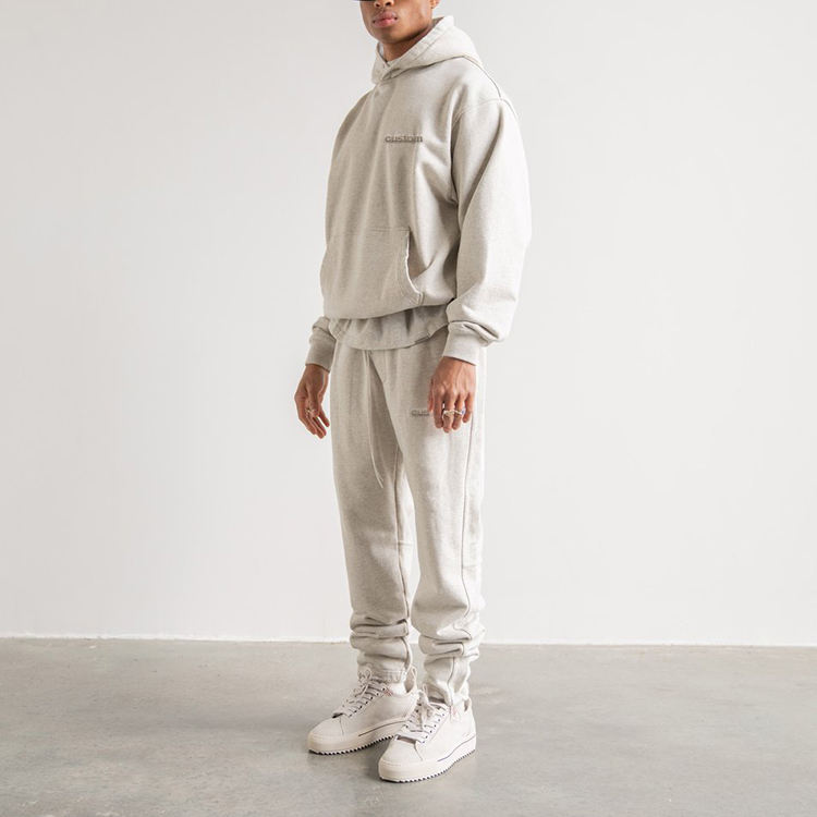 ชุดวอร์มผ้าคอตตอนสำหรับผู้ชายชุดวอร์มแบบลำลองผ้าขนแกะสำหรับฤดูหนาว400GSM โลโก้ตามสั่ง