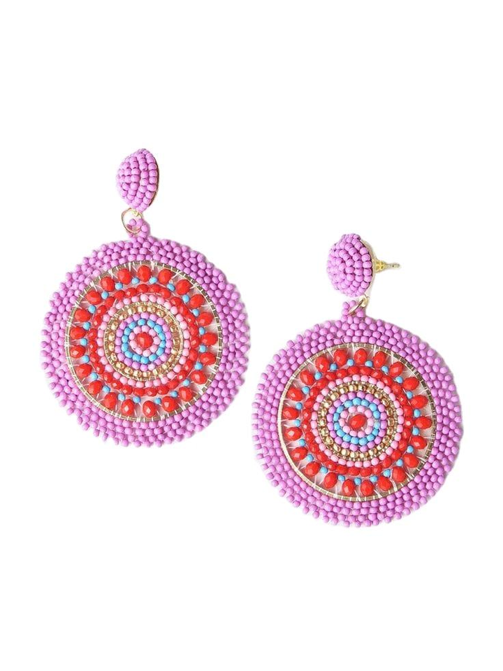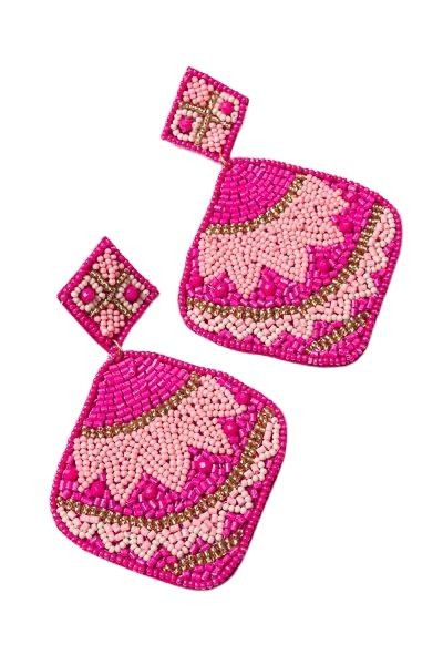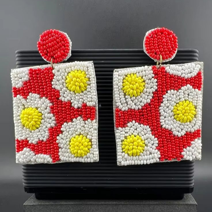 ต่างหูประดับด้วยลูกปัดทรงสี่เหลี่ยมผืนผ้าลายดอกไม้สีแดงงานแฟนซีระดับพรีเมี่ยมสำหรับเด็กผู้หญิงที่มีดีไซน์ทันสมัยและทันสมัย