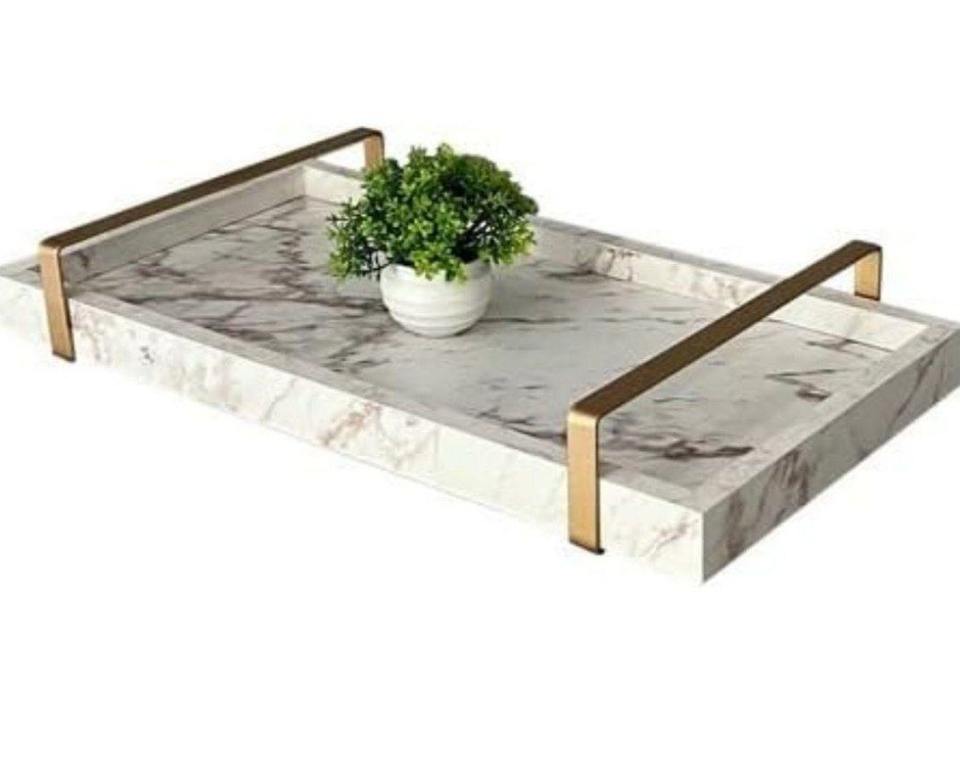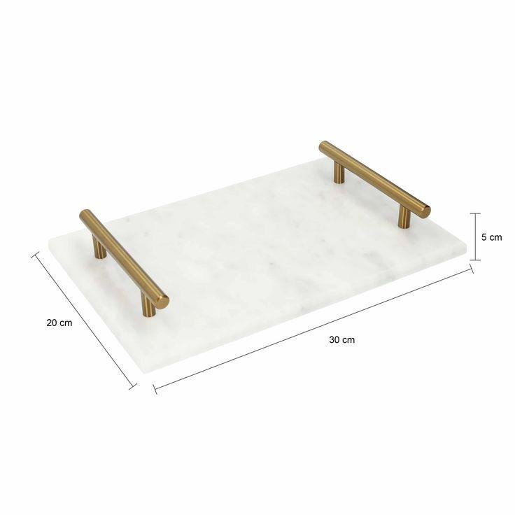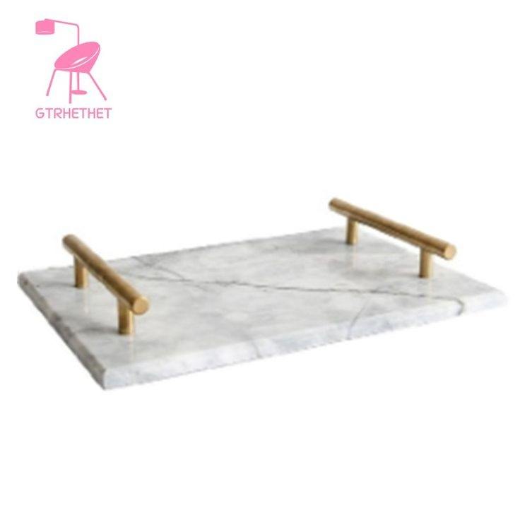 ถาดเสิร์ฟหินอ่อนทรงสี่เหลี่ยมผืนผ้าพร้อมที่จับโลหะและชุบทองสำหรับตกแต่งโต๊ะใช้ในครัว
