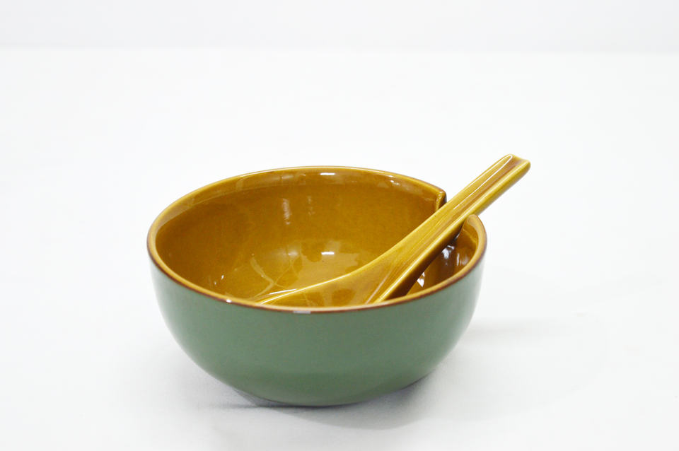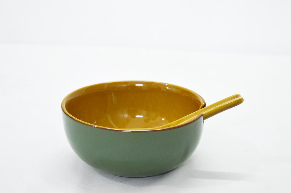 ชามเซรามิกเคลือบผิวแบบพรีเมี่ยมพร้อมช้อนดีไซน์ไม่เหมือนใครชามเซรามิกเคลือบงาช้างหรูหราสำหรับใช้งานในร่มและกลางแจ้ง