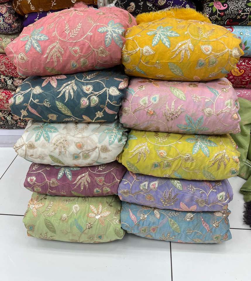 ผ้าจอร์เจตต์เนื้อนุ่มแบบถักพรีเมียม Fendy Warp สำหรับเสื้อผ้าเด็กชายและเด็กหญิง น้ำหนักปานกลาง ปักลายดอกไม้ประดับลูกปัด เหมาะสำหรับงานแต่งงาน