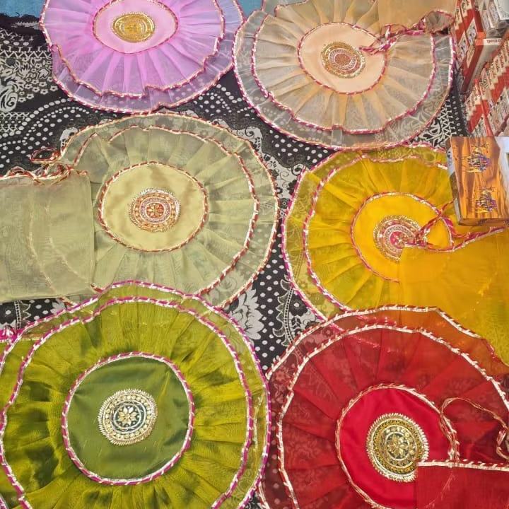 ชุดถาดพิธีกรรมพรีเมียมสำหรับงานมงคล พร้อมดีไซน์ระบายผ้าตาข่ายอย่างหรูหรา ถาดทรงกลมสำหรับงานแต่งงาน กุฎบาราย และงานคาร์วาชอต