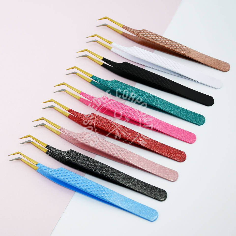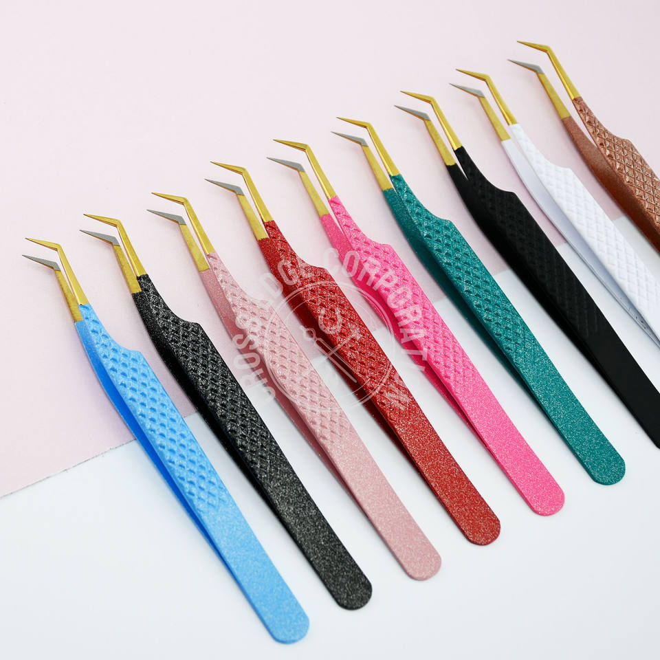 แหนบต่อขนตาปลายไฟเบอร์พรีเมียม สีดำด้าน 45 วอลุ่มแฟนส์ รัสเซียนเมก้าวอลุ่ม แบบกันลื่น สำหรับมืออาชีพ