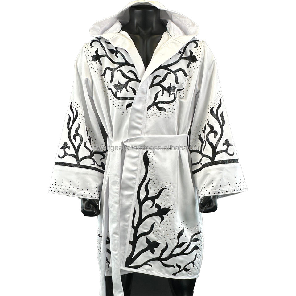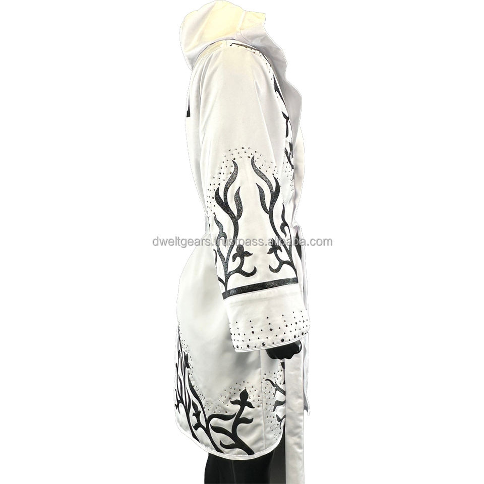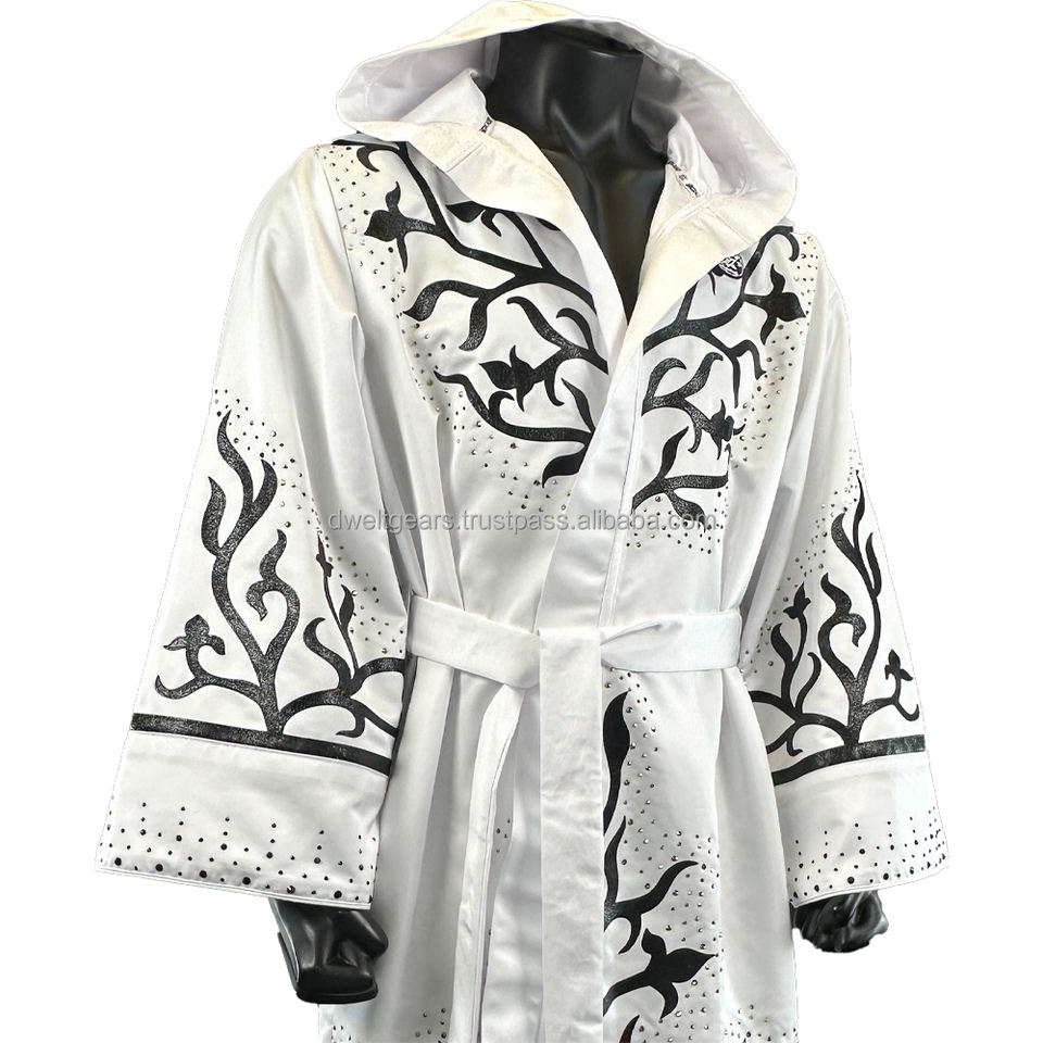 ชุดคลุมออกกำลังกายแบบมีฮู้ดผ้าซาตินสำหรับนักมวยระดับพรีเมียม ชุดสำหรับเดินเข้าสนามชกมวย ผู้จัดจำหน่ายชุดกีฬา