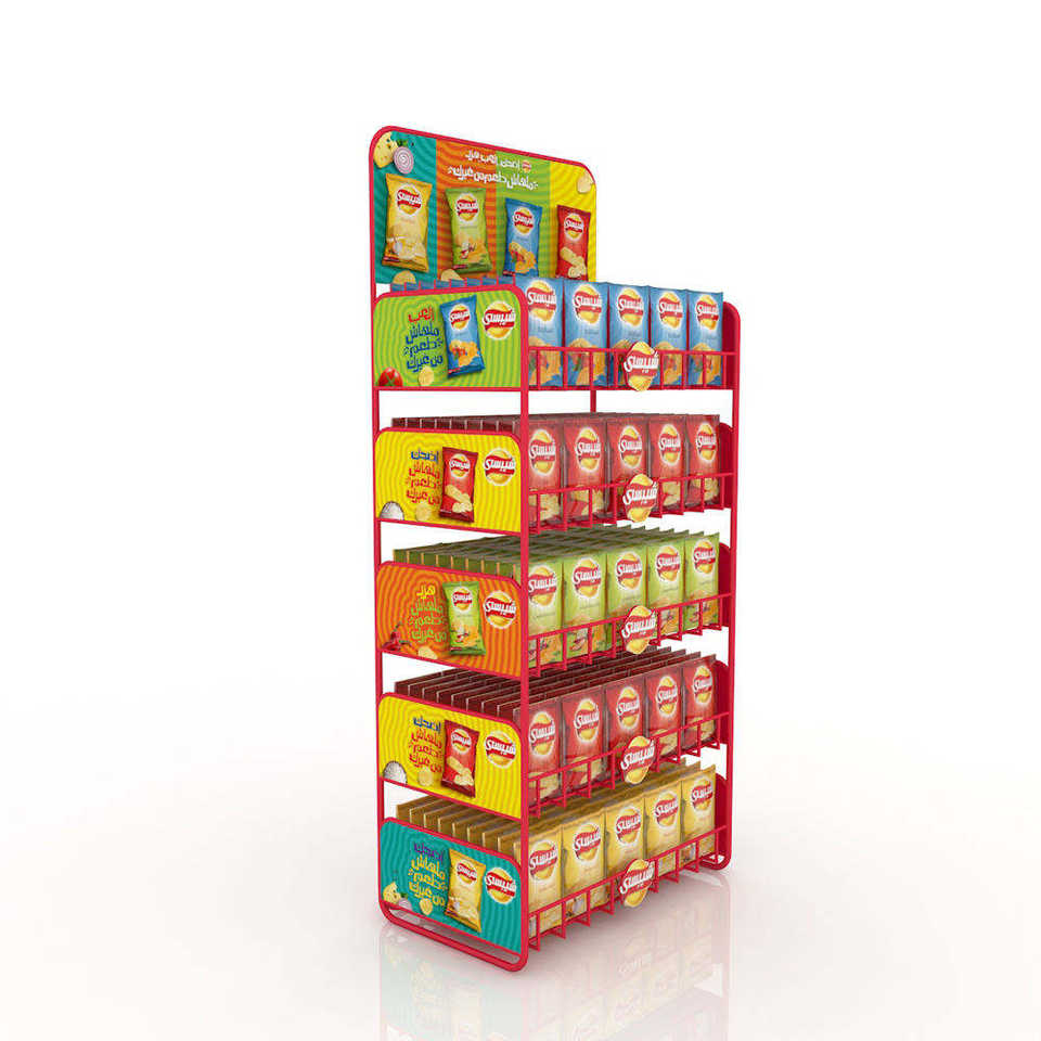 ชั้นโชว์ขนมโลหะสไตล์โบราณตกแต่งแบบพรีเมี่ยมชั้นวางแบบกำหนดเองสำหรับกรอบสำหรับแสดงชิปบิสกิต