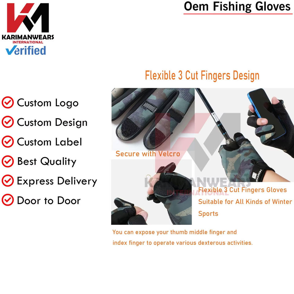 Premium Fishing Gloves Reinforced Palm Finger Grip Shock Resistant Padding Breathable Quick Dry Fabric Adjustable Wrist Strap
