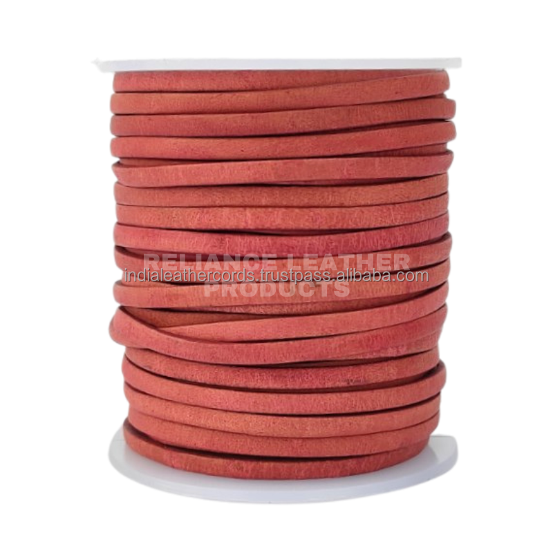 สายหนังวัวแท้แบบแบน พรีเมียม ขนาด 3 มม./4 มม./5 มม. สีชมพูฟูเชียโบราณ วัสดุทำสร้อยข้อมือวินเทจสำหรับงานประดิษฐ์เครื่องประดับ