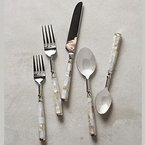 ชุดส้อมแบบแบนพร้อมด้ามจับไข่มุกทำจากสแตนเลสเคลือบเงา