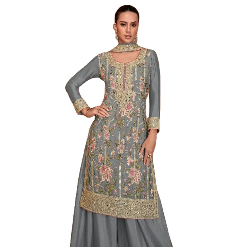 ชุดสาหรี่กะมีซปักลายดอกไม้พรีเมียม ทรงเข้ารูป ความยาวปานกลาง แห้งเร็ว เหมาะสำหรับใส่ลำลอง งานปาร์ตี้ งานเทศกาล งานแต่งงาน ดีไซน์ทันสมัย สไตล์ชาติพันธุ์