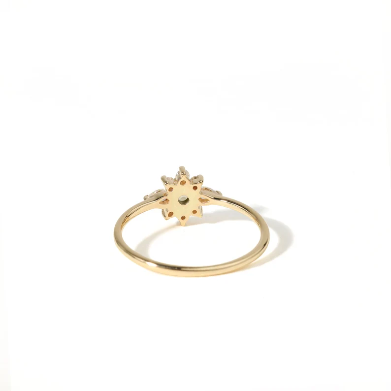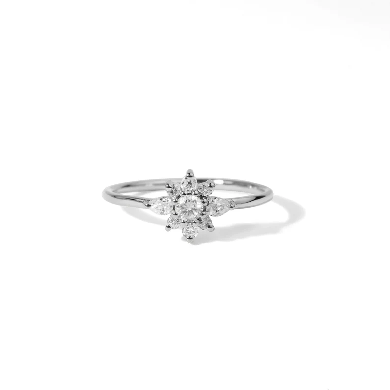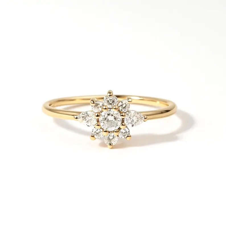 แหวนเพชรคลัสเตอร์เพาะเลี้ยงคุณภาพพรีเมียม ดีไซน์ดอกไม้ทอง 14K สไตล์มินิมอล สำหรับหมั้น หรือเป็นแหวนแทนใจในวันครบรอบ สำหรับผู้หญิง