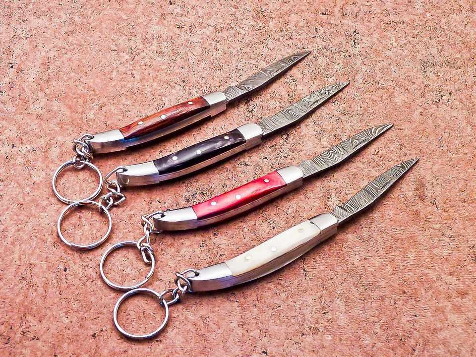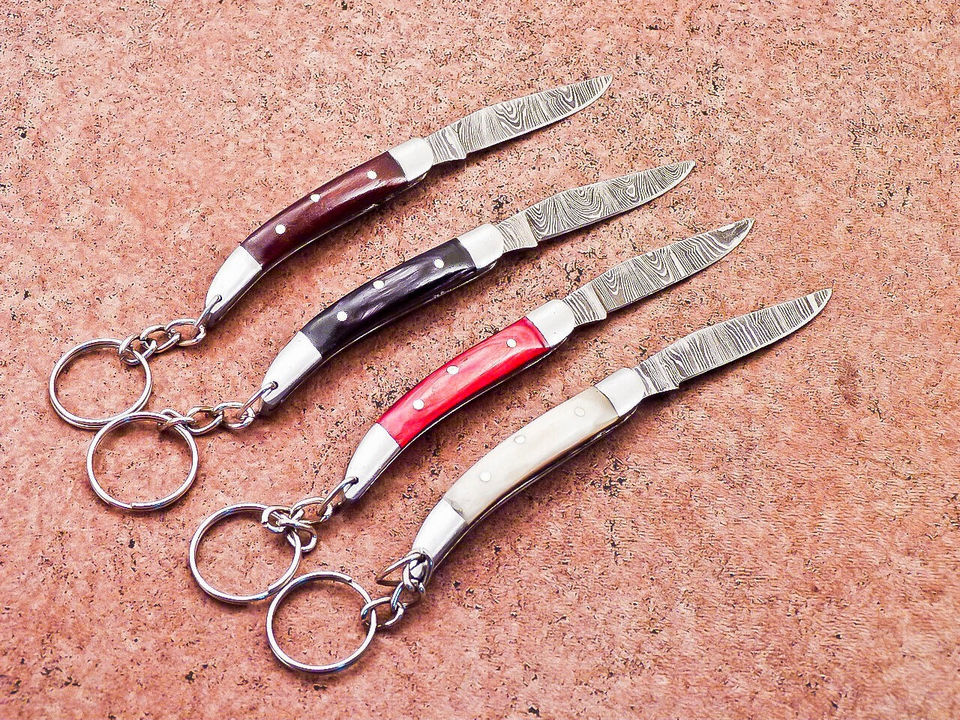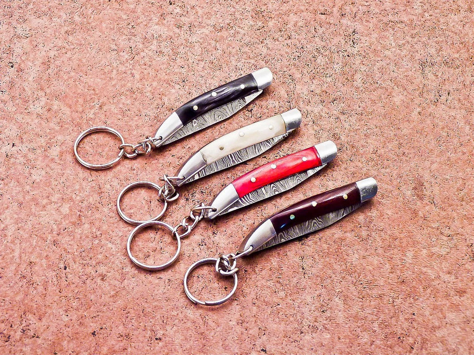 ที่ใส่กุญแจพับได้แบบพรีเมียม เหล็กดามัสกัส มีดพับพกพา EDC ขายส่ง ดรอปชิปปิ้ง พร้อมห่วงคล้อง