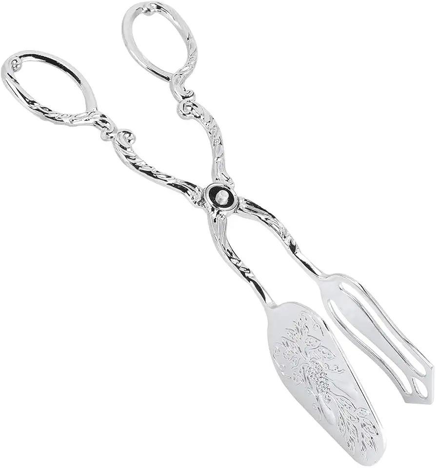 Premium Food Grade Metal Pastry Tongs Catering Buffet Serving Utensils Bread Cake Salad BBQ Kitchen Cooking Tools