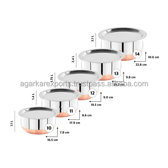 ชุดหม้อสเตนเลสเกรดพรีเมียมสำหรับทำอาหาร พร้อมฝาปิด ฐานทองแดง