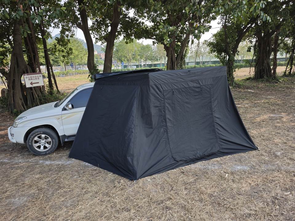 ห้องต่อเติมหลังคาผ้าใบทรงพัดลมแบบชั้นเดียว พรีเมียม สำหรับทุกฤดู ขนาด 270 ซม. พร้อมเสาตั้งพื้น 4 เสา สำหรับติดตั้งกับหลังคาผ้าใบรถยนต์ ขนาด 2 ม./2.5 ม.