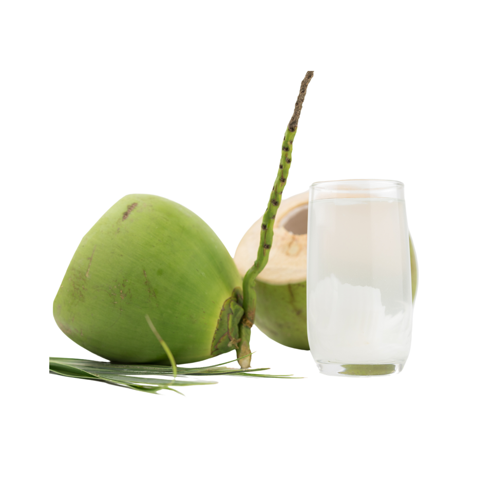 มะพร้าวออร์แกนิกรสหวานสีเขียวและสีขาวเปลือกหอยเขตร้อนพร้อมบรรจุภัณฑ์แบรนด์ที่ทันสมัย