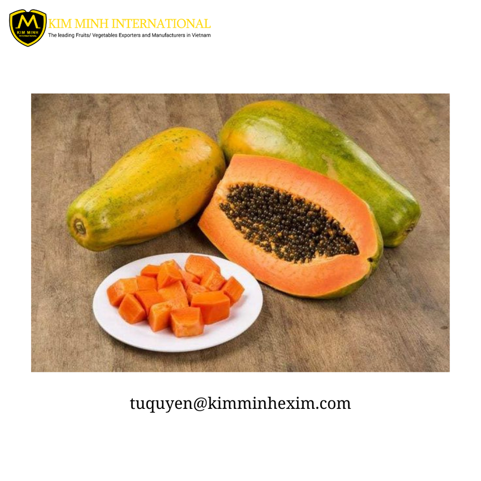 มะละกอเวียดนามแช่แข็งแบบพรีเมี่ยมทั้งรูปแบบสดและปิดผนึก Iqf แพ็คสูญญากาศรสหวานส่งออกสำหรับตลาดเวียดนาม