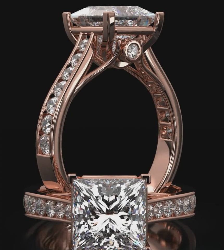 แหวนแต่งงานหรูหราหลายชั้น ชุบทองคำชมพู 14k พร้อมเพชรโมอิสซาไนต์ VVS แท้ รับรองโดย IGI ตัวเรือนเงินแท้ 925 ประดับแบบ Bezel Setting