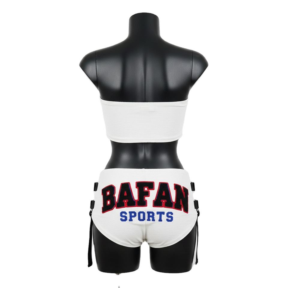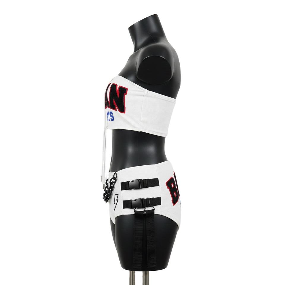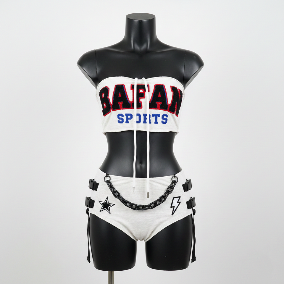 ชุดบิกินี่ผู้หญิงผ้าฝ้ายผสมโพลีเอสเตอร์เกรดพรีเมียม สีขาวดำ ปักลายเชนีล พร้อมปักโลโก้ตามสั่ง