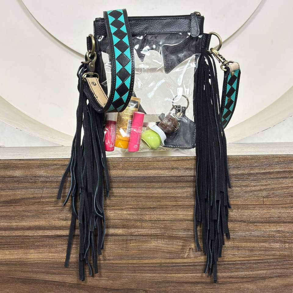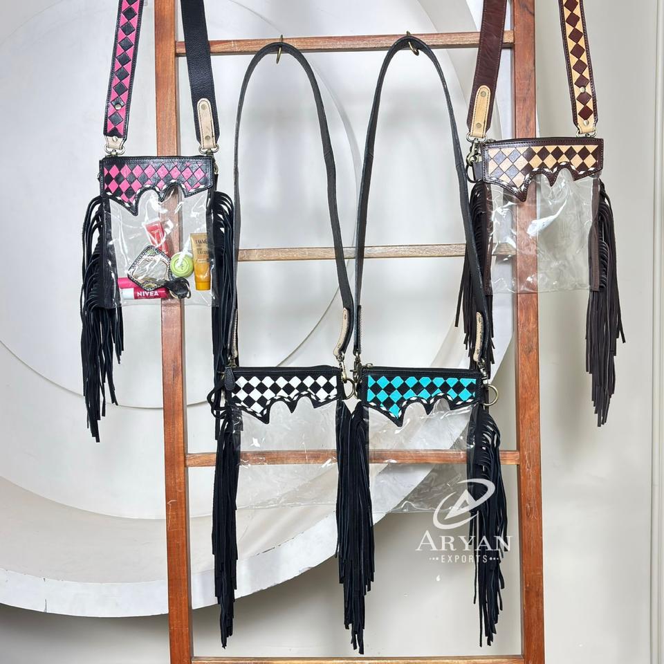 กระเป๋าสะพายข้างใสลายพู่สไตล์สเตเดียมทำมือ