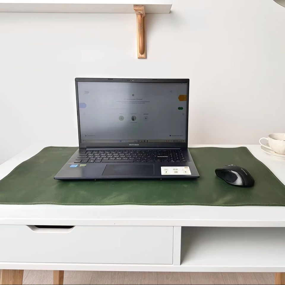 แผ่นรองโต๊ะหนังแท้พรีเมี่ยมกลิ่นกันลื่นพื้นผิวหนังวัวทนทานแบบลำลองไม่ลื่น LDM-0118ตั้งโต๊ะที่ทันสมัย