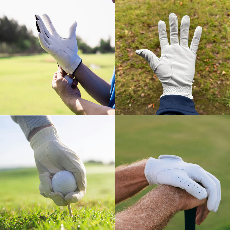 ถุงมือกอล์ฟหนัง Cabretta พรีเมียมสำหรับมือซ้าย กันน้ำ ระบายอากาศได้ดี สวมใส่สบาย ทนทาน รับผลิตแบบ OEM ODM จัดส่งรวดเร็ว