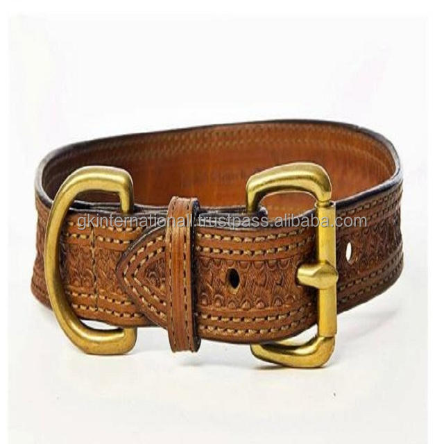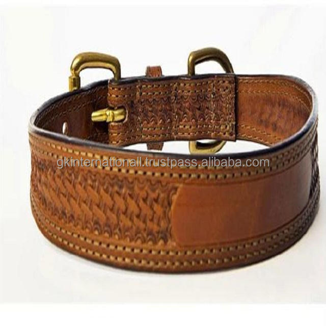 Premium Genuine Leather Western Pattern Dog Collar with Hand Carved Weave Design Embossed Strong & Durable Stitching Pet Collar