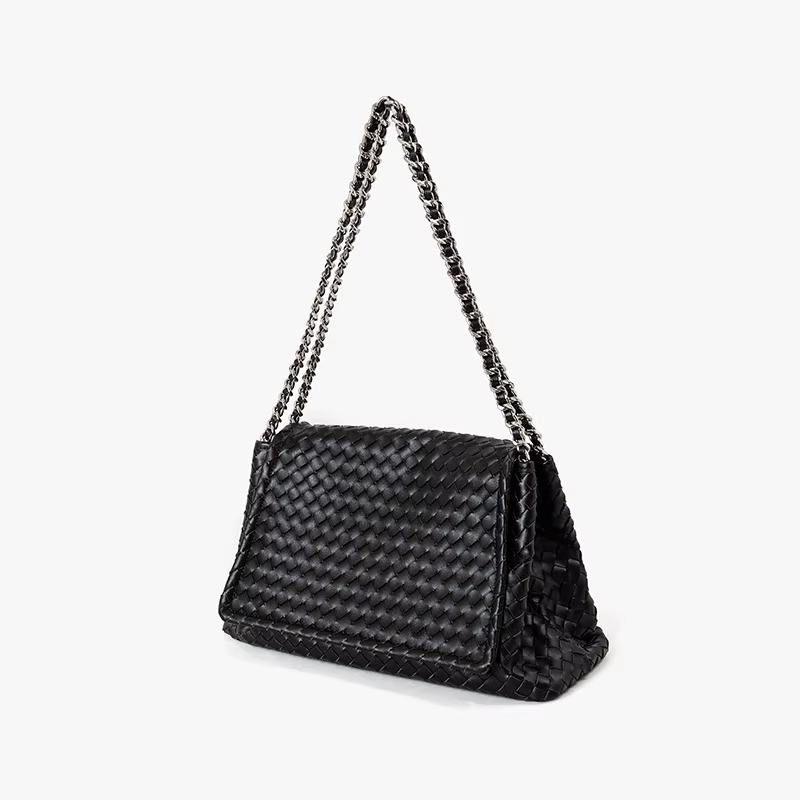 กระเป๋าสะพายไหล่หนังแท้สไตล์วินเทจพรีเมียมสำหรับผู้หญิง ดีไซน์หรูหรา ทำมือ พร้อมฝาปิดและสายโซ่สีเงินเก๋ไก๋ กันน้ำ