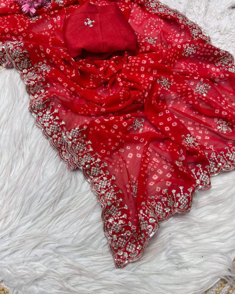 ผ้าซารีพิมพ์ลายพรีเมียมจากจอร์เจตต์มิลล์ พร้อมงานปักประณีต และผ้าไหมโมโนสำหรับตัดเสื้อปักลายดีไซเนอร์แบบยังไม่เย็บติดกัน