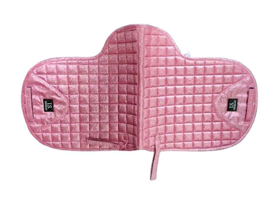 แผ่นรองอานม้าแบบพรีเมียมสีชมพูวิบวับ ผ้าฝ้ายเย็บลาย สำหรับขี่ม้า ซับแรงกระแทก พร้อมโลโก้สั่งทำได้