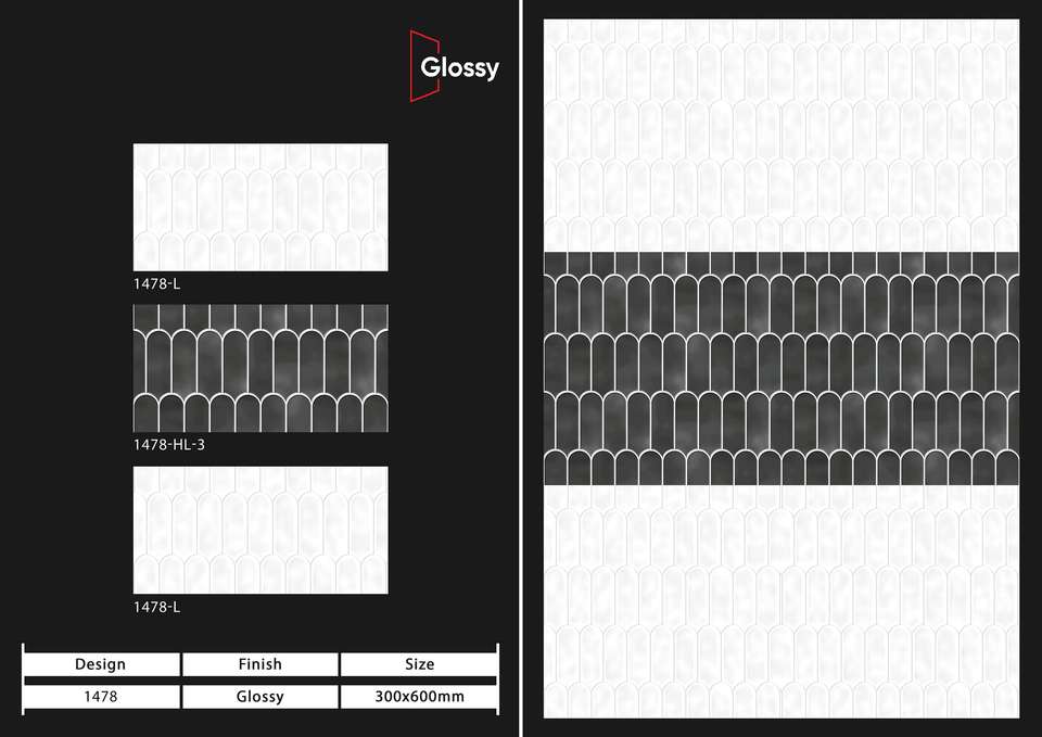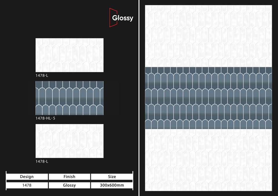กระเบื้องเซรามิกผนังแบบมันเงา พรีเมียม ขนาด 12x24 นิ้ว สำหรับตกแต่งผนังภายในห้องน้ำและห้องครัว พร้อมผิวเรียบสะท้อนแสง