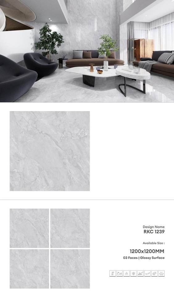 Premium Glossy Porcelain Floor Tiles 1200x1200 | 120x120 Large Format Wall Tiles | Durable Stylish Modern Export Collection