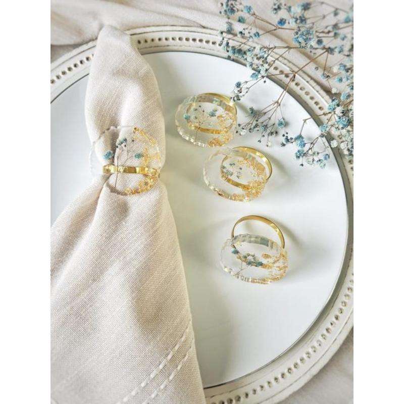 ห่วงรัดผ้าเช็ดปากทำจากเรซิ่นมันวาวแบบพรีเมี่ยมพร้อมด้วยเกล็ดสีทองแบบฝังและเหมาะสำหรับการเพิ่มความมีเสน่ห์ให้กับการตกแต่งโต๊ะในงานแต่งงานและงานเลี้ยง
