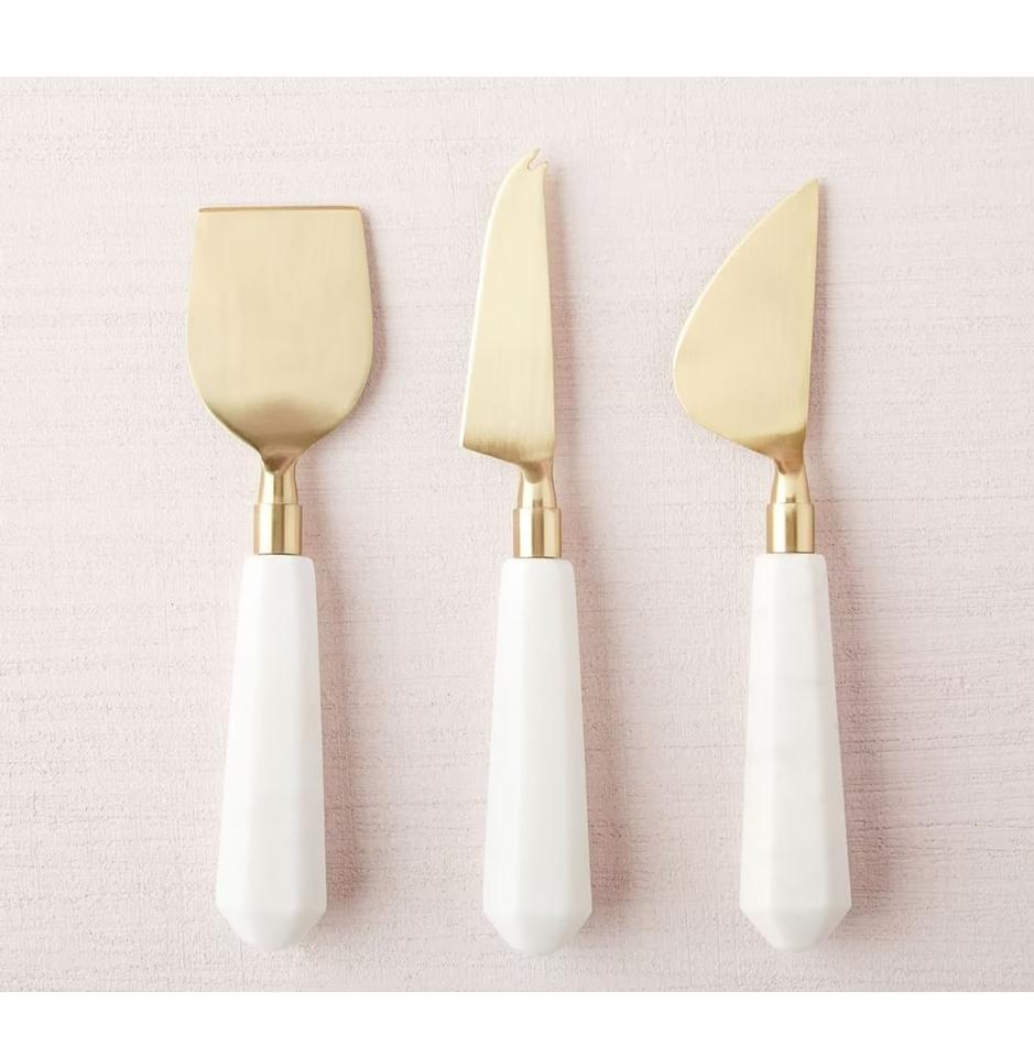 ชุดมีดชีสพรีเมียมเคลือบทอง พร้อมด้ามไม้และหินอ่อน สำหรับใช้ในบ้านและร้านอาหาร อุปกรณ์สำหรับชีส