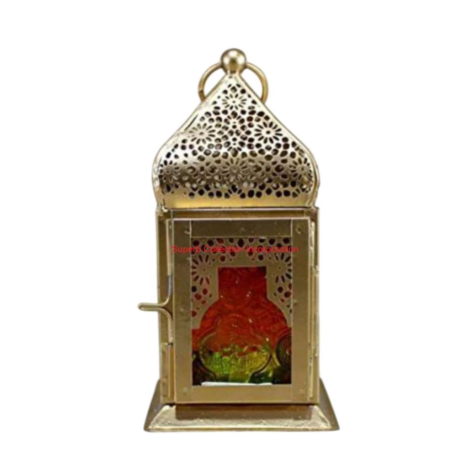 แขวนและโคมไฟโต๊ะสไตล์โมรอคโคโลหะเคลือบสีทองแบบพรีเมี่ยมพร้อมแผงกระจกสีแดงดีไซน์ลายเส้นที่ซับซ้อนสำหรับเทศกาลดิวาลิที่สง่างาม