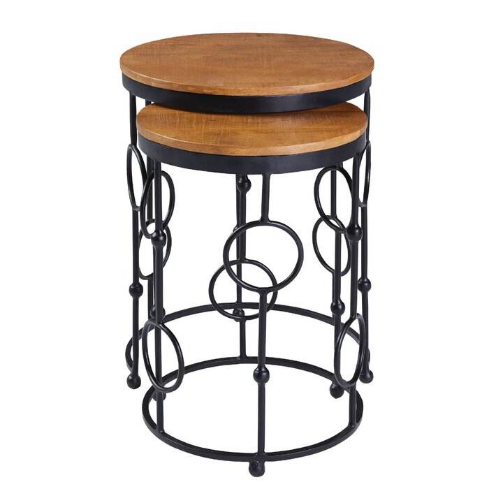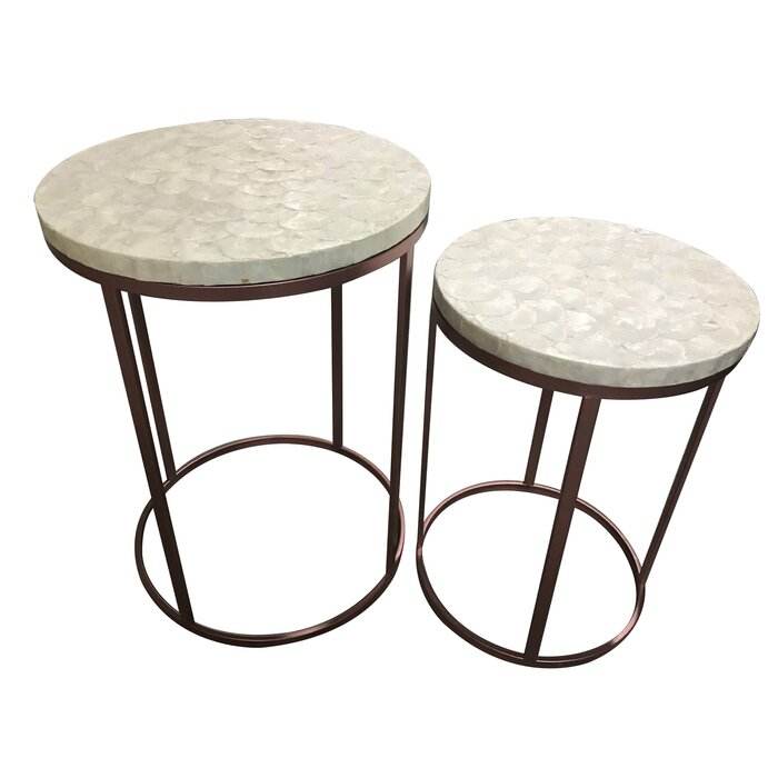ชุดโต๊ะวางซ้อนกัน 2 ตัว โครงโลหะเคลือบทองพรีเมียม ท็อปกระจกนิรภัย โต๊ะกลางดีไซน์หรูหราสำหรับตกแต่งห้องนั่งเล่น