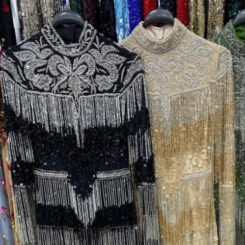 ชุดราตรีปักมือทองคำพรีเมียม แขนเสื้อคลุมแบบเคป ชุดเดรสยาวออกงาน ดีไซน์เนอร์ ขายส่งจากโรงงาน