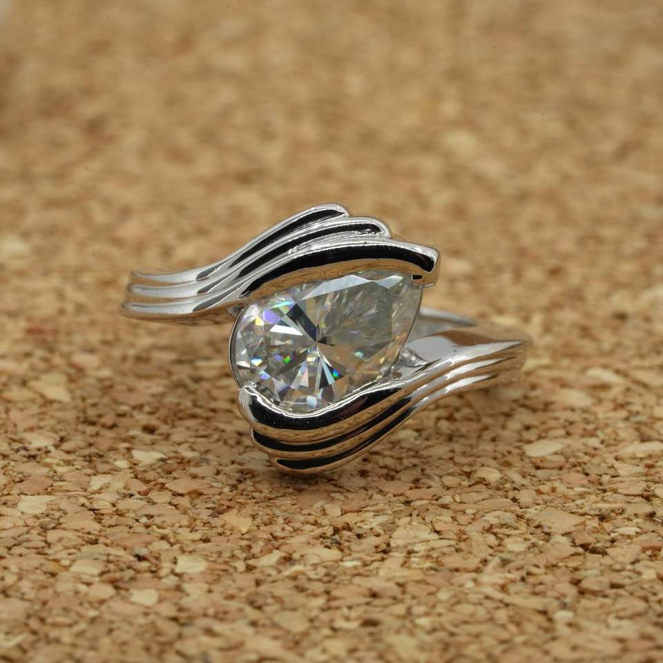 แหวนเพชรเพาะเลี้ยงเกรดพรีเมียม 3.40 กะรัต รูปทรงลูกแพร์ สี E รับรองโดย IGI ชุบทอง 10k ผลิตอย่างมีจริยธรรมและยั่งยืน ขายส่ง