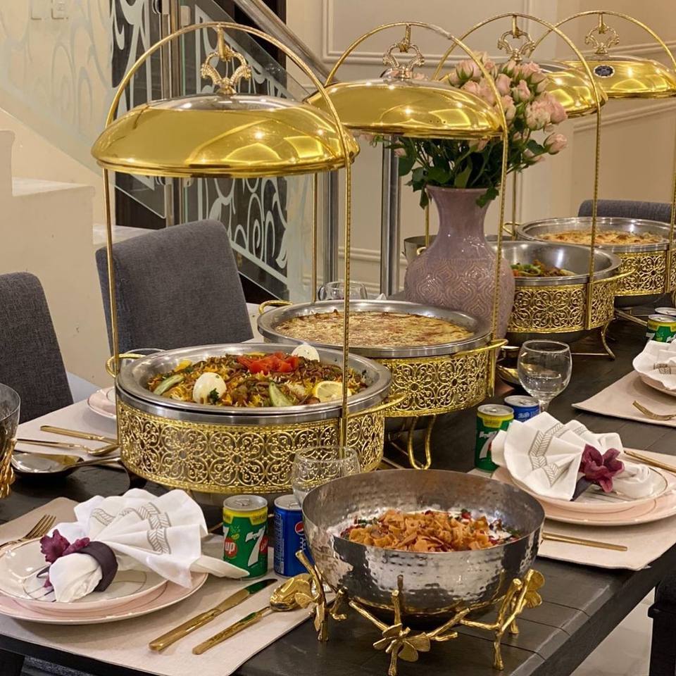 ถาดอุ่นอาหารบุฟเฟ่ต์เคลือบทองพรีเมียม สแตนเลส พร้อมฝาปิด สำหรับโรงแรม บ้าน ร้านจัดเลี้ยง และร้านอาหาร