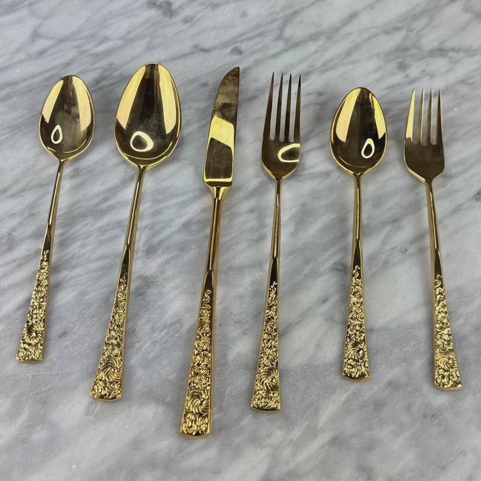 ชุดช้อนส้อมดีไซน์ดอกไม้ชุบทองพรีเมียม เหมาะสำหรับงานเลี้ยงอาหารค่ำอย่างเป็นทางการ ตกแต่งบ้าน จัดโต๊ะอาหาร และงานอีเว้นท์ จากประเทศอินเดีย