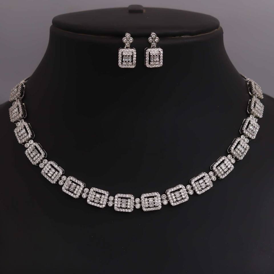 ชุดสร้อยคอและต่างหูเคลือบทองคำขาวระดับพรีเมียมสำหรับผู้หญิง สวมใส่ได้หลากหลายโอกาส ทั้งงานปาร์ตี้ งานแต่งงาน ประดับด้วยเพชรคิวบิกเซอร์โคเนีย ทำจากโลหะผสม