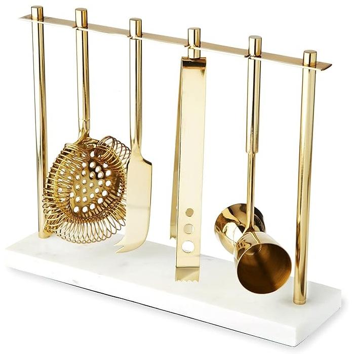 ชุดเครื่องมือบาร์สแตนเลสสตีลเกรดพรีเมียมสีทอง พร้อมฐานหินอ่อน อุปกรณ์ผสมค็อกเทลสุดหรูสำหรับบาร์ในบ้าน โรงแรม และร้านอาหารระดับไฮเอนด์
