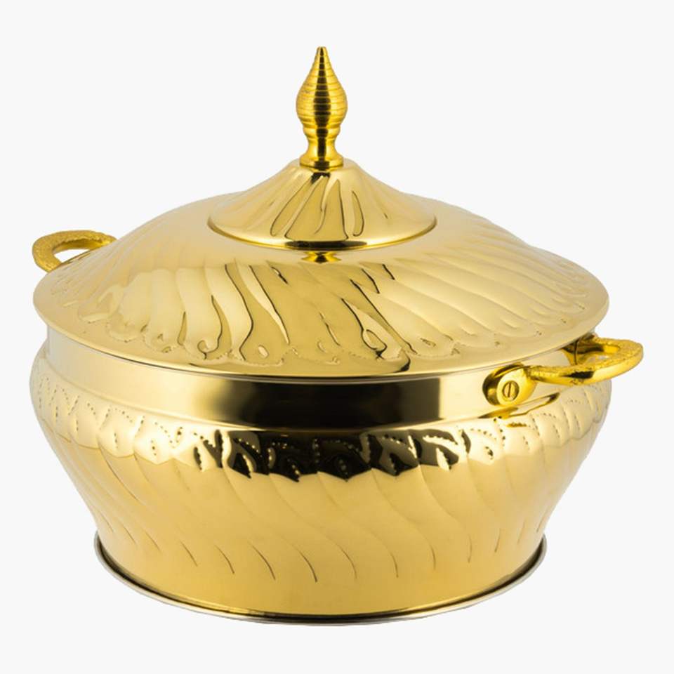 หม้อปรุงอาหารสแตนเลสสตีลสีทองแบบพรีเมี่ยมหม้อตุ๋นที่วางซ้อนกันได้และมีน้ำหนักเบาสำหรับจัดเลี้ยงบุฟเฟ่ต์และใช้ในบ้าน