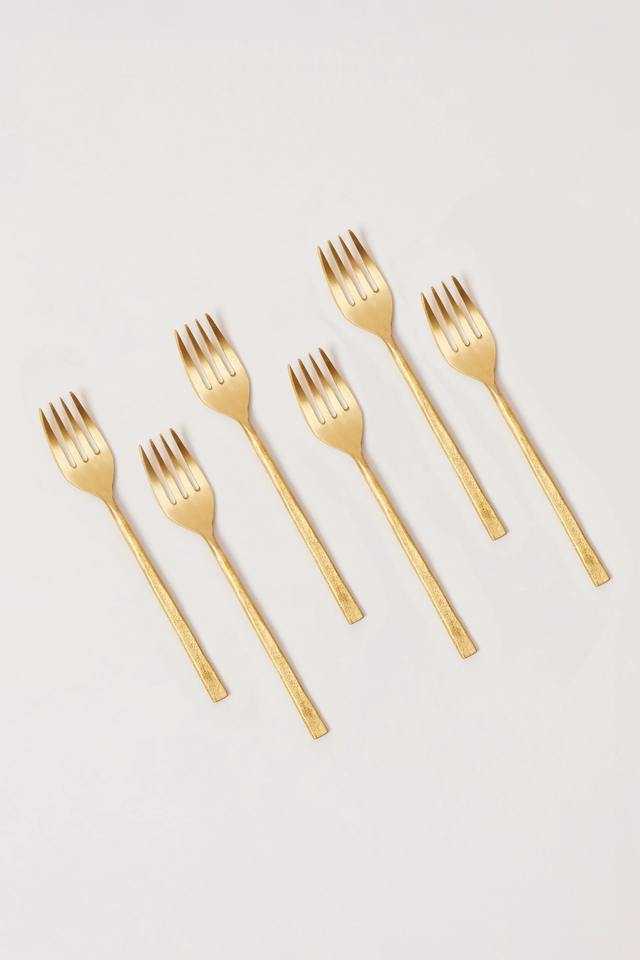 ส้อมสแตนเลสสีทองแบบพรีเมี่ยมพร้อมงานประดิษฐ์เสร็จเรียบเหมาะสำหรับโต๊ะอาหารงานปาร์ตี้ในโรงแรมที่จัดเลี้ยงจากอินเดีย
